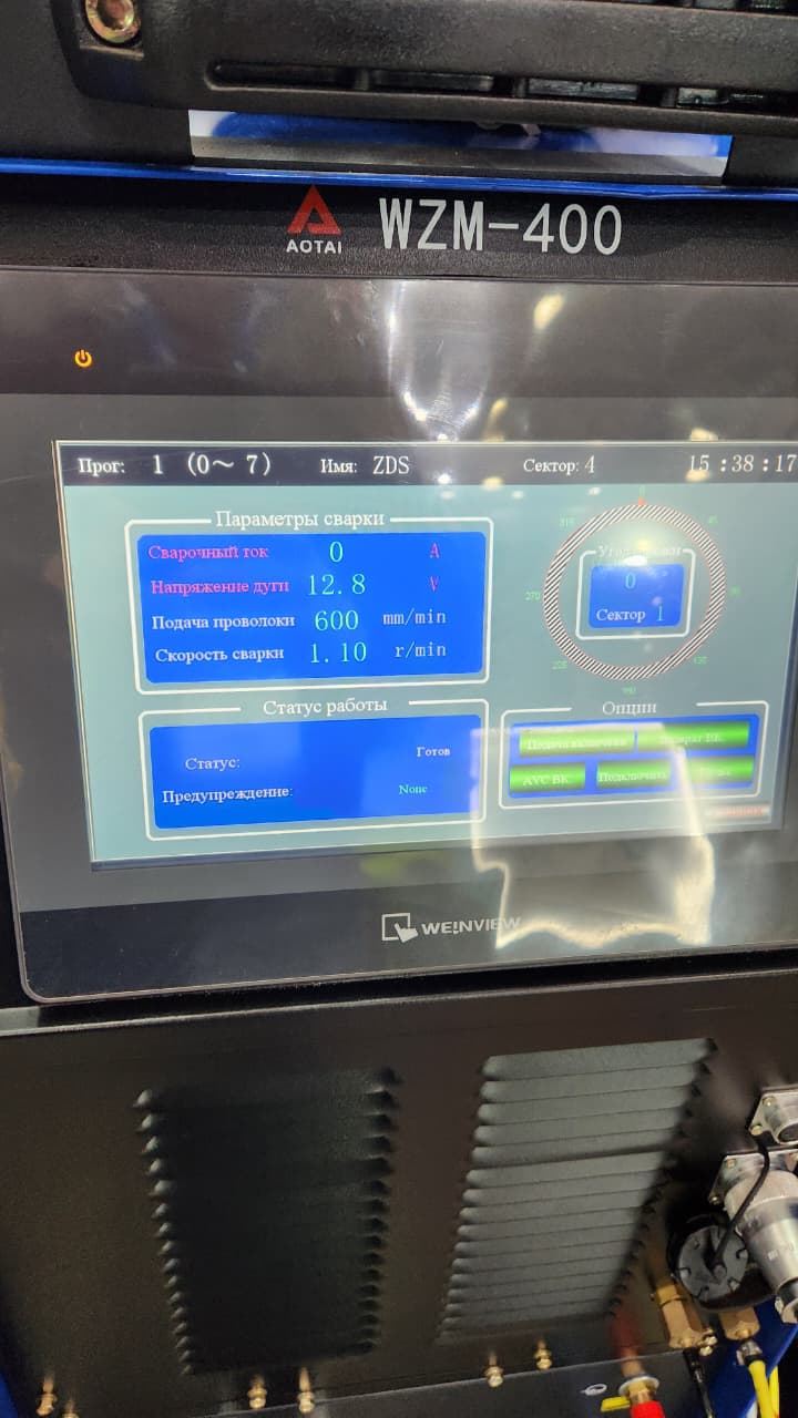 - Хранение параметров сварки: WZM-400 способен сохранять до 60 наборов параметров процесса сварки, а одна программа может быть разделена на 16 секторов, что позволяет легко адаптироваться к изменениям в процессе.